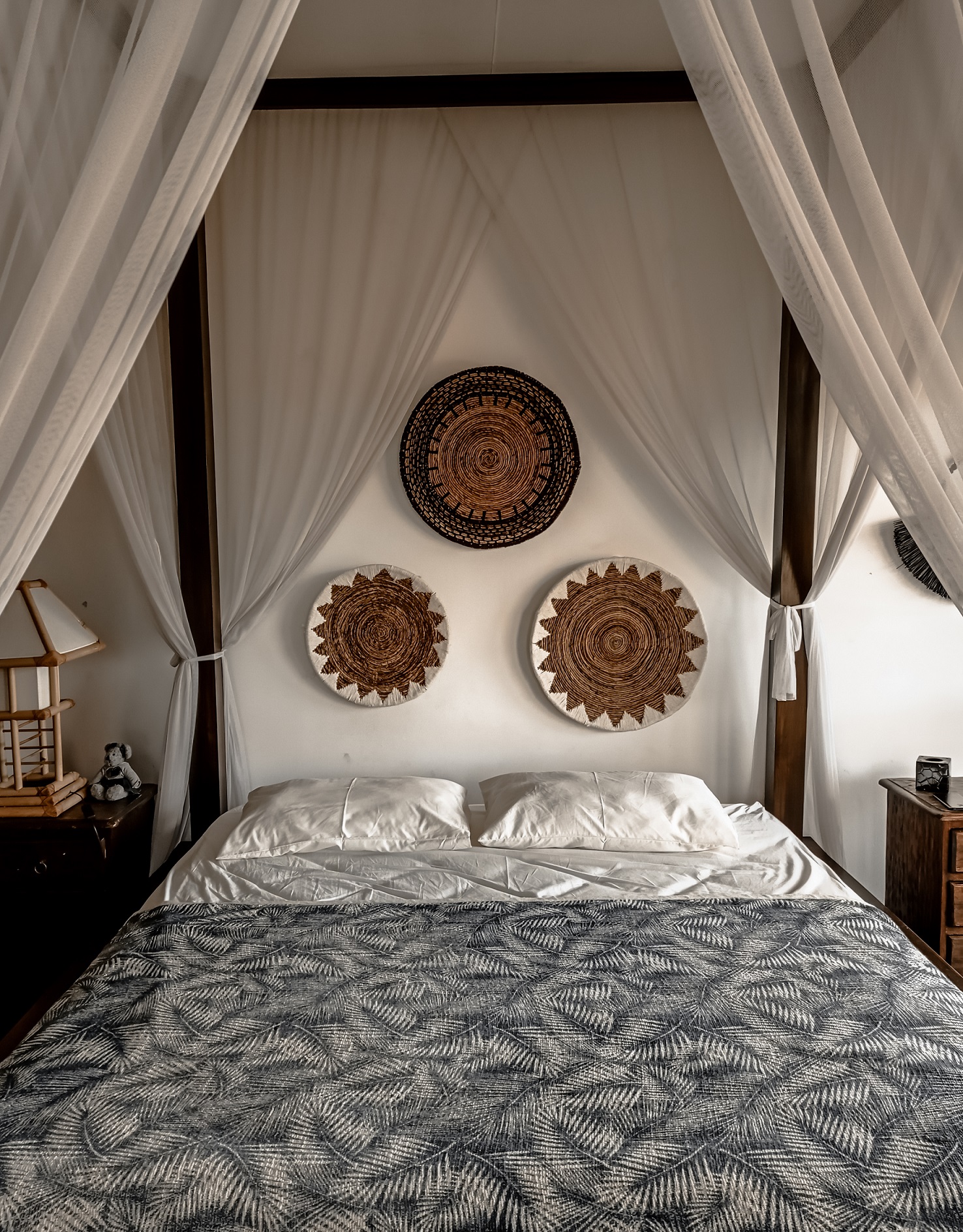 Dekoracja ścienna Deco – jest wykonana ręcznie z liści bananowca. Przypomina pleciony kosz lub talerz, ozdobiony ciekawymi wzorami w stylu etno. Są dostępne w różnych kolorach i wielkościach, dlatego można z nich stworzyć własną, indywidualną kompozycję, która wystarczy za całą dekorację ściany.