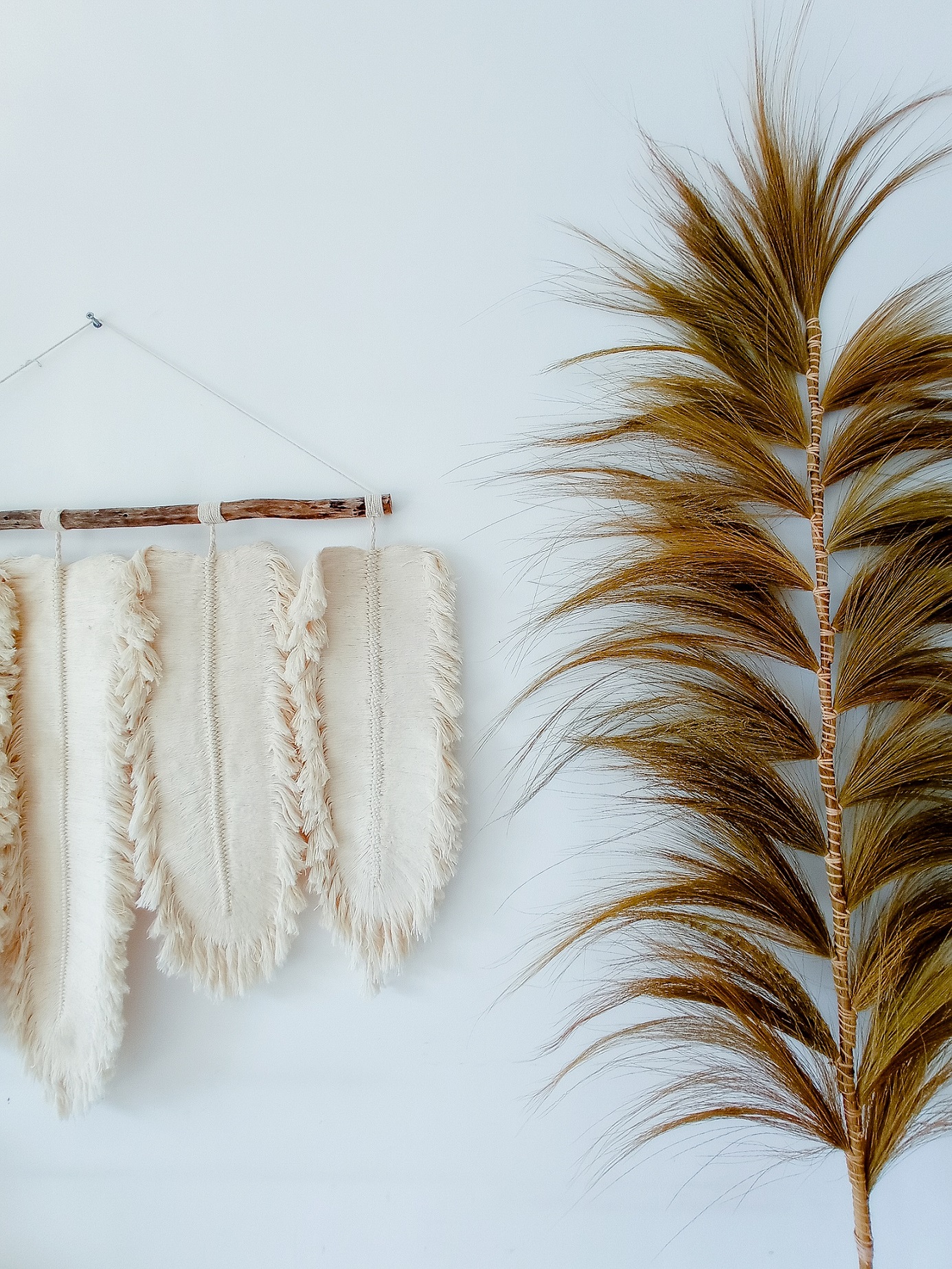 Dekoracja ścienna makrama Pięć Liści – makramy przeżywiają swój wielki „come back”. Ta z kolekcji Monnarita jest wyjątkowa – piękne liście w kolorze białym, wykonane techniką makramy z bawełnianego sznurka, zostały zawieszone na naturalnej, ciemnej gałązce. Ten niebanalny dodatek w stylu boho ożywi każdą przestrzeń i przyciągnie wzrok.